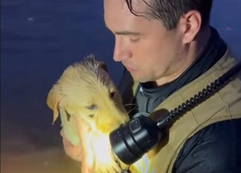 And as the first faint hints of dawn crept across the flooded horizon, one fragile life that might have been lost to the water was still here — safe, warm, and finally no longer alone.