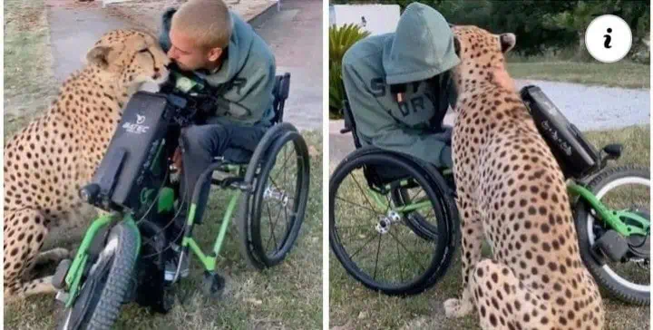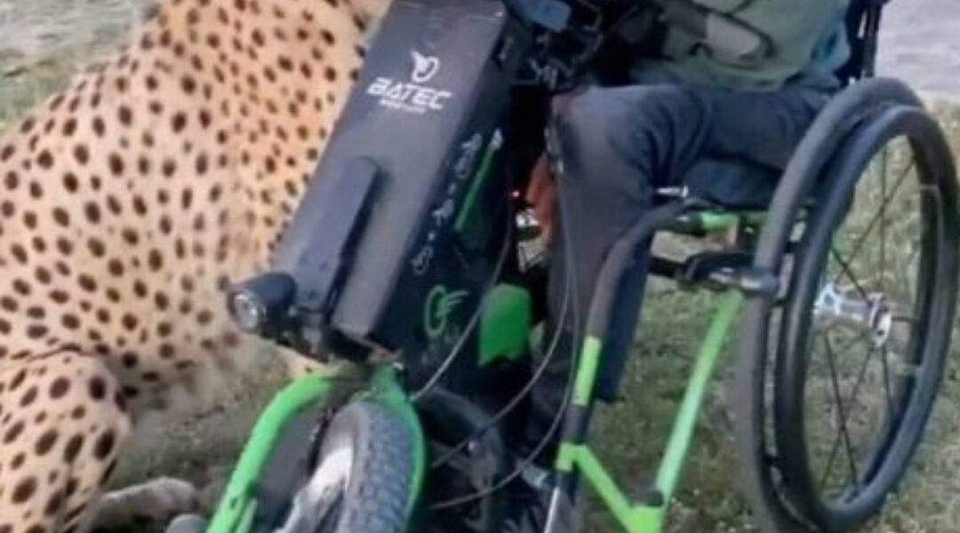 In videos now seen by millions online, the two can be seen together: Joan rolling across the open field in his wheelchair, the cheetah walking beside him, head lowered, tail swaying. At times, the big cat leans in to nuzzle his shoulder. Other times, it sprawls beside him, purring softly like a house cat, eyes half-closed in trust.