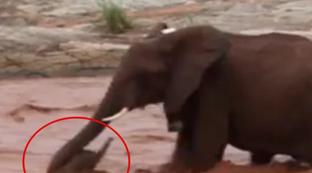 One moment he was beside her, the next he was gone — swept sideways by the current, his small body no match for the force of the water. His legs flailed uselessly. His trunk lifted instinctively, reaching for air as the river carried him away.