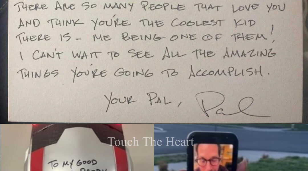 Paul Rudd met a kid who was being bullied and sent him a signed helmet for  when he takes on the world and a heartfelt note telling him that life gets  better