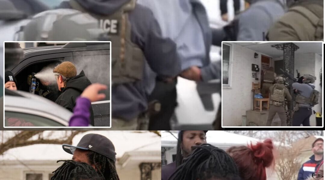 Moments earlier, federal agents had deployed pepper spray against protesters who confronted them, burning eyes and throats in the freezing air. The smell still lingered when a man was led out of the house in handcuffs.