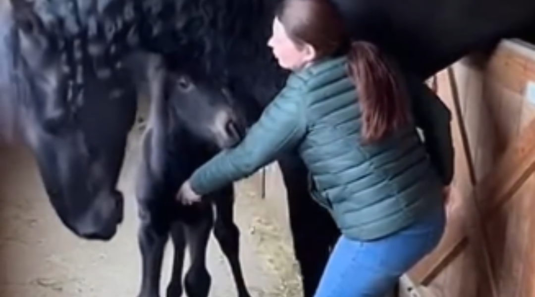 From the far end of the barn, footsteps approached. Sarah, a woman with kind eyes and years of barn life etched into her gentle hands, had been nearby tending to other horses. She had raised and cared for these animals for over a decade, learning their subtle languages: the flick of an ear, the shift of weight, the depth of a nicker. When she heard the mare’s call, she knew it was different. It wasn’t hunger or discomfort—it was a mother asking for help.